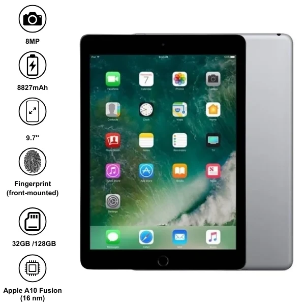 The iPad 6th generation with 4G connectivity offers a seamless blend of performance and portability. Boasting a stunning 9.7-inch Retina display, this device delivers crisp visuals and vivid colors for an immersive viewing experience. Powered by an A10 Fusion chip, it ensures smooth multitasking, effortless navigation, and supports demanding apps and games.