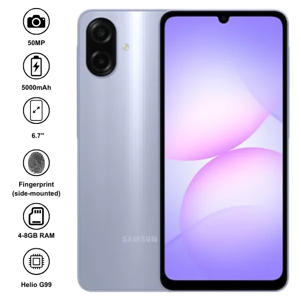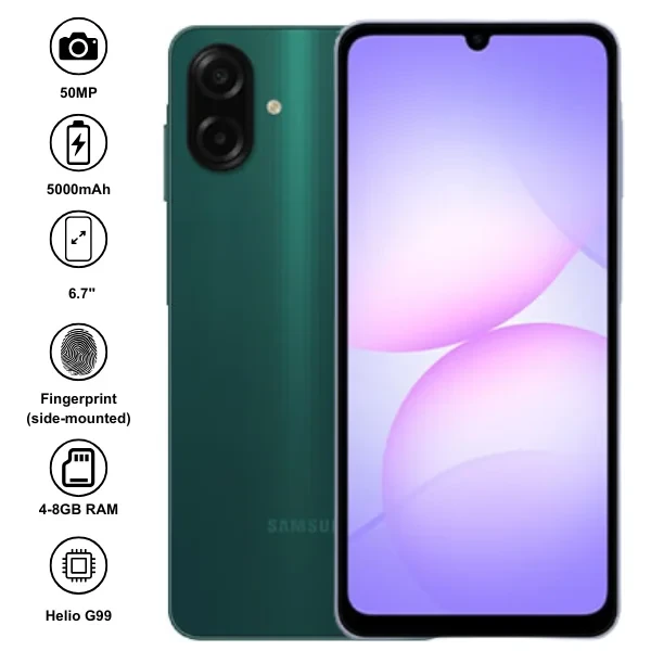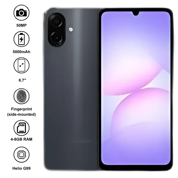 The Samsung Galaxy A07 features a large 6.7-inch display for an immersive viewing experience.