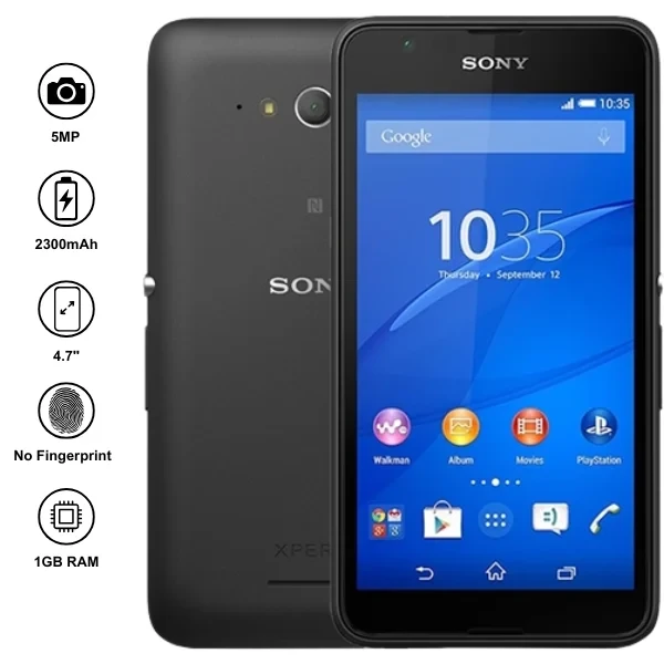 The Sony Xperia E4G is an affordable smartphone that combines style with reliable performance and 4G connectivity. It features a 4.7-inch qHD display that provides clear and bright visuals for videos, browsing, and social media. Powered by a quad-core processor with 1GB RAM, it ensures smooth handling of everyday tasks and light multitasking. The 5MP rear camera captures sharp photos, while the 2MP front camera is great for selfies and video calls. With its strong battery life, the Xperia E4G keeps you connected throughout the day. Compact, lightweight, and easy to use, it’s a practical choice for users who want speed and simplicity at a budget-friendly price.